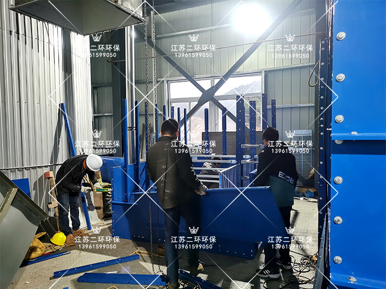 安裝方案:扁布袋除塵器拆散后,碎片化從門窗進(jìn)場(chǎng),然后模塊化組裝,積木式拼裝,滿足業(yè)主不破壞廠房外觀要求。