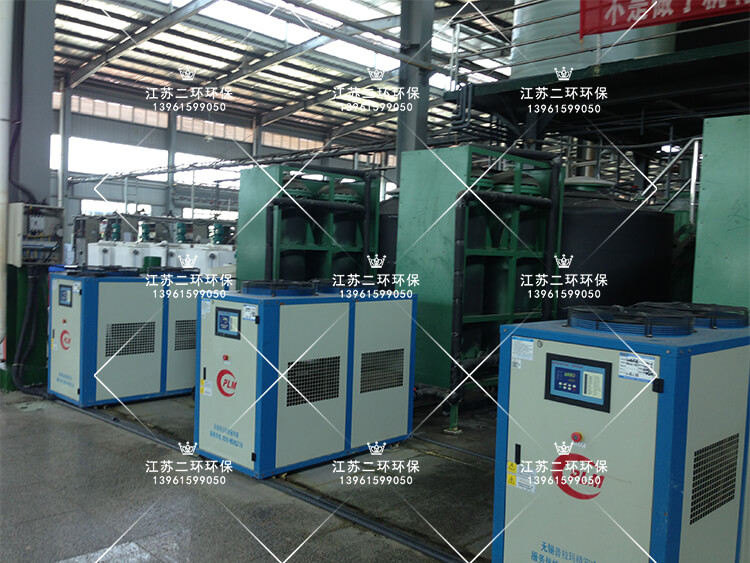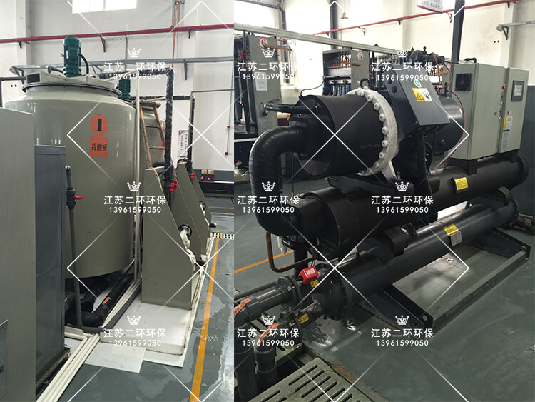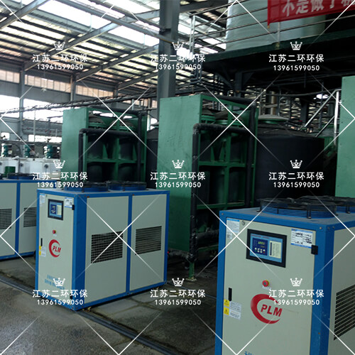 利用風(fēng)冷式冷凍機或螺桿水冷機冷凍制冷,冷凍機自身帶有高效熱交換器,冷凍壓縮機制冷傳導(dǎo)給冷凍劑R22(乙二醇),溫度保持在-10攝氏度以上,形成冷凍水,存儲在冷凍水箱中。冷凍水與常溫稀硫酸,通過耐腐石墨管熱交換器進行熱量交換,石墨管內(nèi)壁走流動的稀硫酸,石墨管外壁走流動的冷凍水。兩種液體存在較大的溫差梯度,常溫稀硫酸的熱量快速被石墨管外壁的低溫冷凍水帶走,從而使得稀硫酸能夠快速的被冷卻。整個過程在密閉的容器中進行,沒有酸霧飄逸,安全可靠。